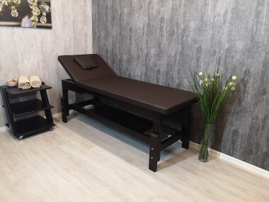 • Покрытие ложа выполнено из высококачественного кожзаменителя, максимально устойчивого к маслам и кремам, используемым при процедурах.