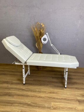 Удобная и прочная кушетка с шириной 70 см, регулировкой высоты и полкой для хранения принадлежностей. Кушетку благодаря усиленному каркасу, можно использовать для проведения массажа, косметологических, лечебных процедур, а также мануальной терапии.