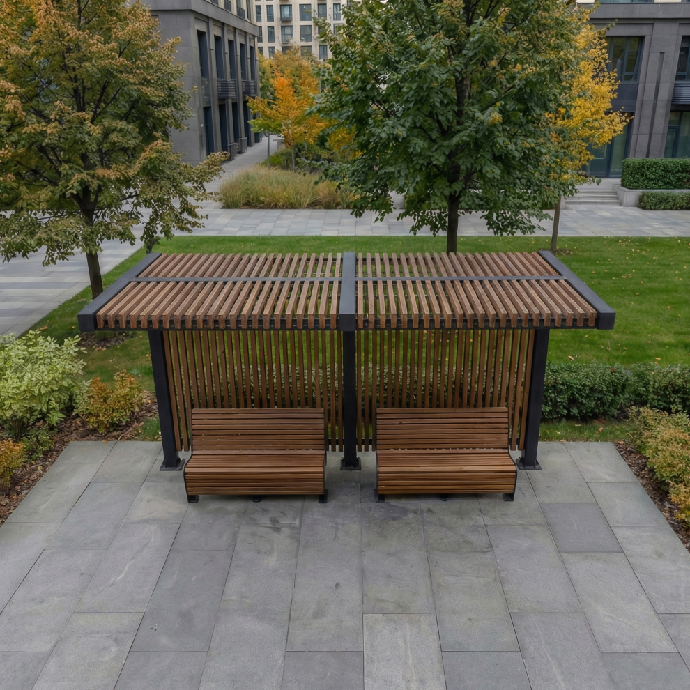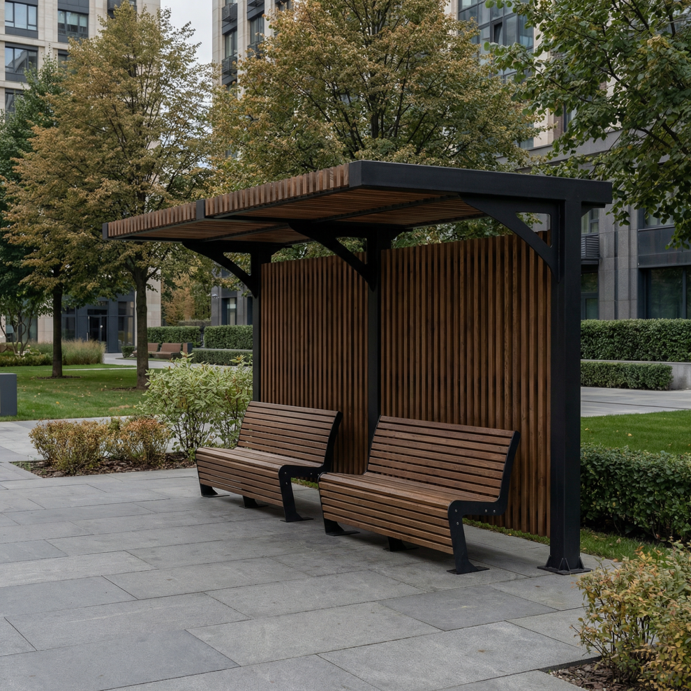 - Надёжность и долговечность. Металлический каркас, окрашенный порошковой краской с грунтовкой, обеспечивает прочность и долговечность конструкции. Вы можете выбрать цвет краски по таблице RAL, чтобы гармонично вписать скамейку в окружающую среду.
