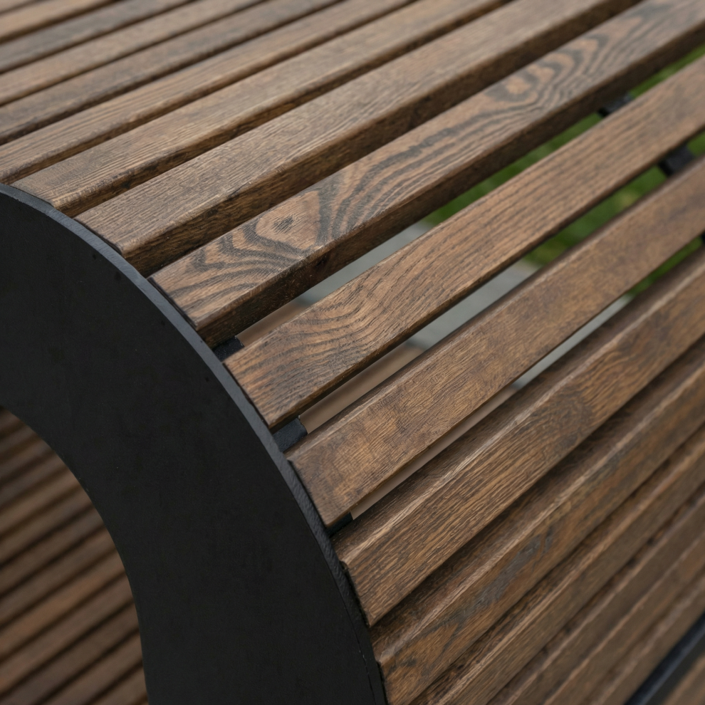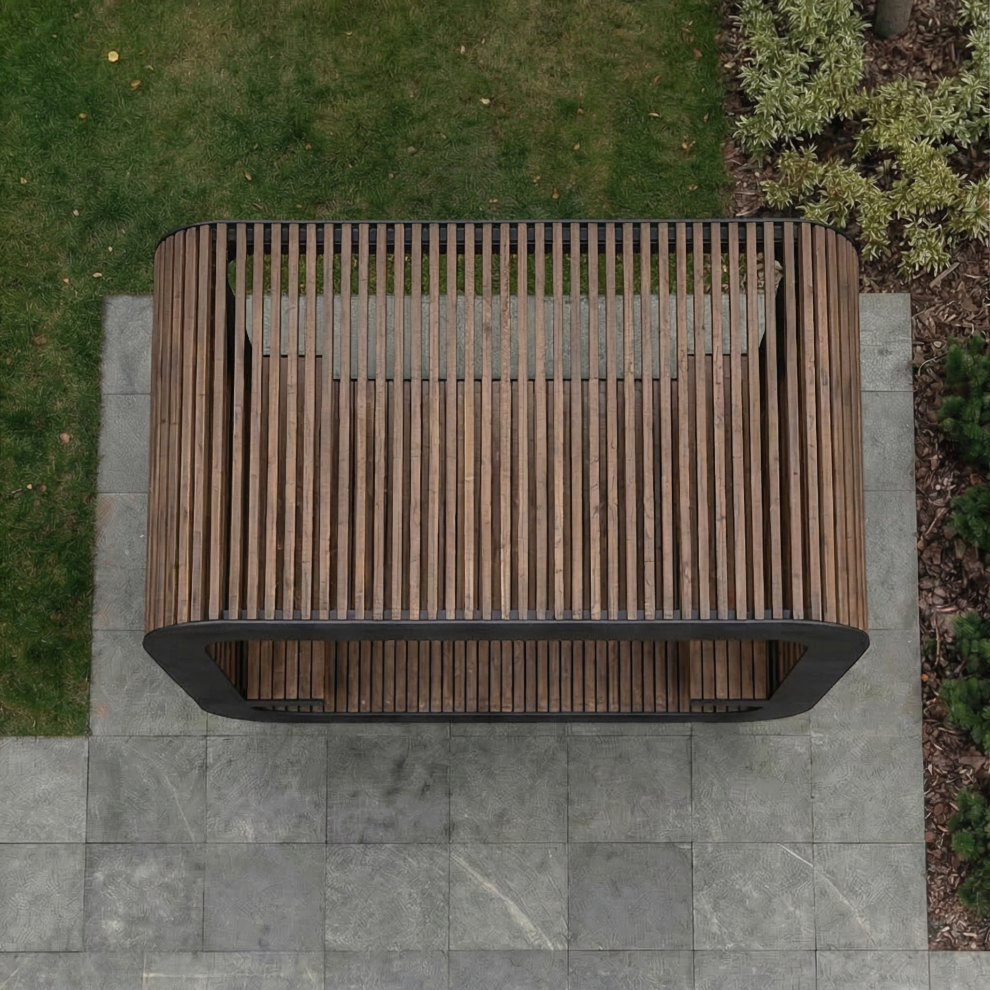Пергола GF1 выполнена на металлическом каркасе с элементами из натурального дерева (строганная сосна камерной сушки). Пергола станет не только практичным, но и эстетически привлекательным дополнением к любому уличному пространству.
