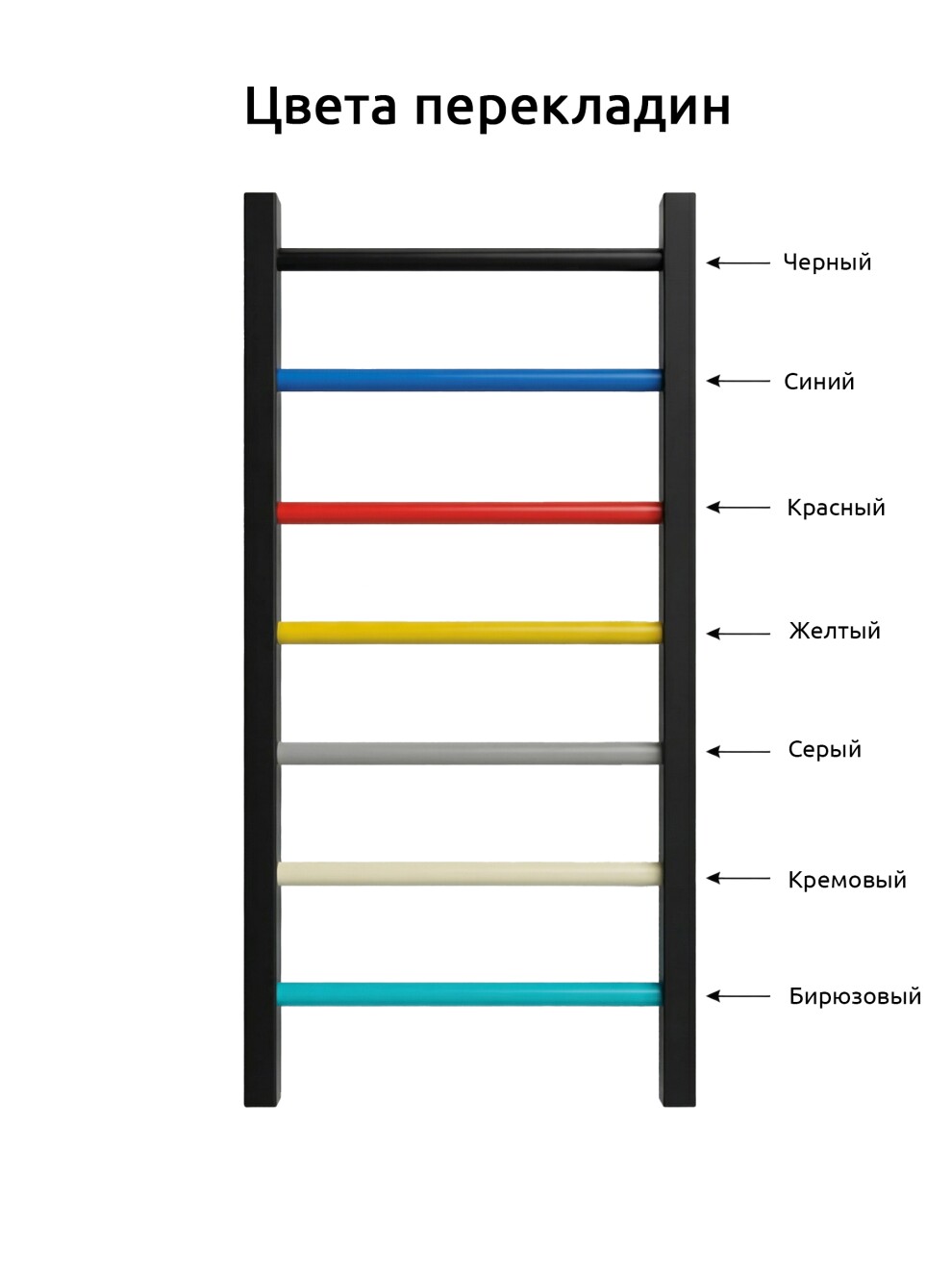 Цвет перекладин на выбор: черный, кремовый, желтый, красный, синий, серый, бирюзовый, разноцветные.