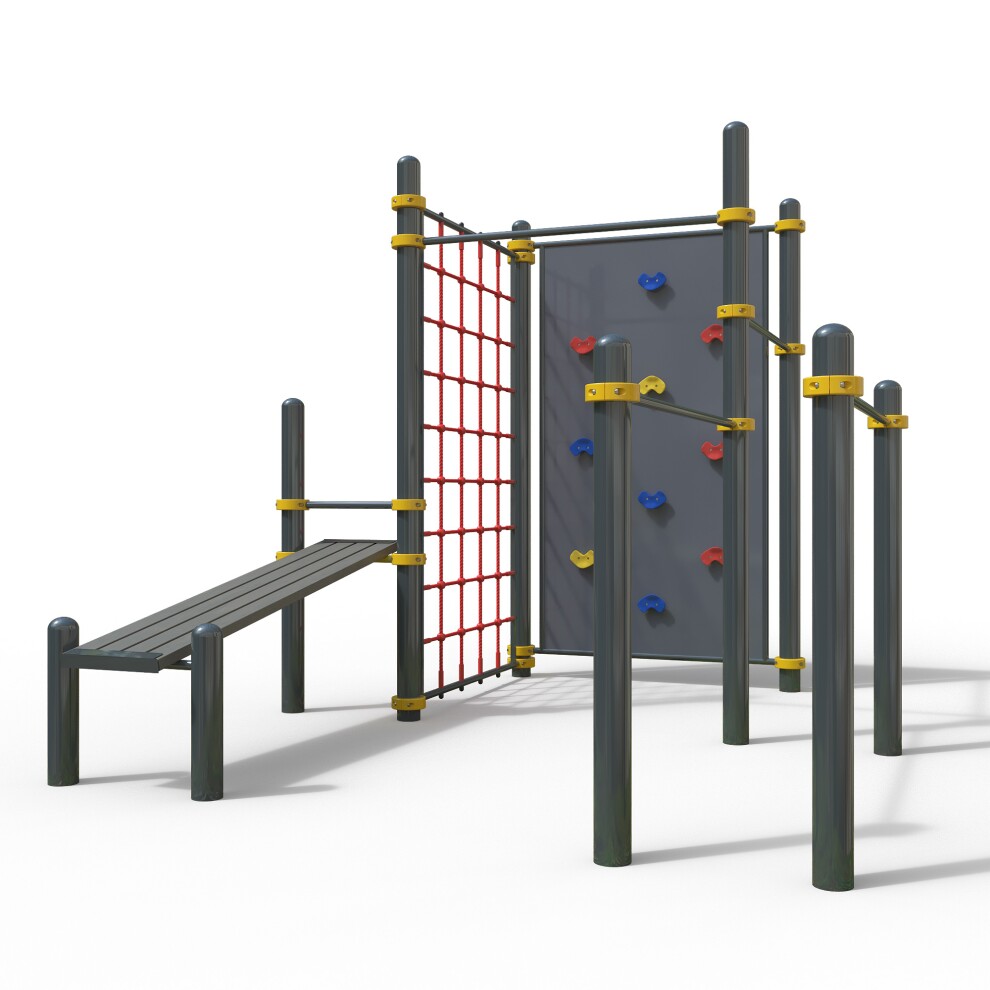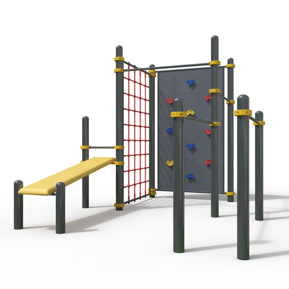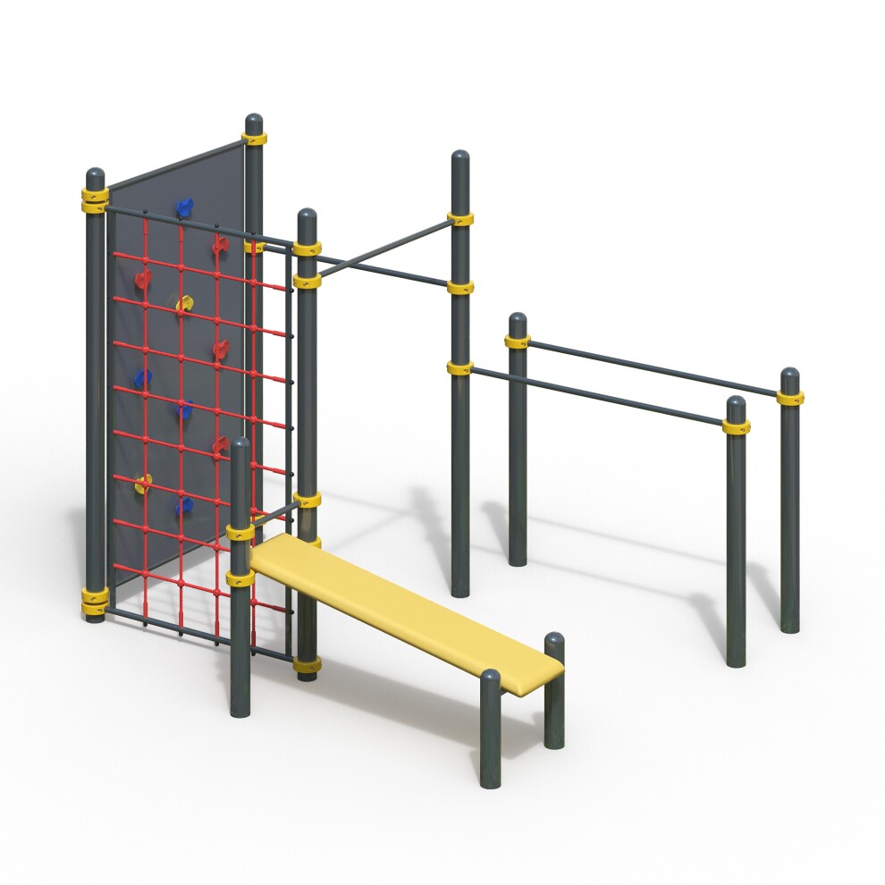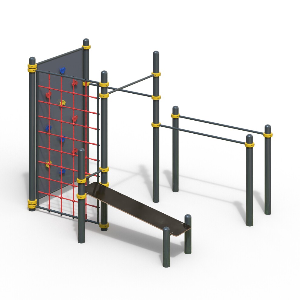 Уличный спортивный комплекс для workout WK-115 устанавливается на частных территориях и в общественных местах. Обладает следующими особенностями: