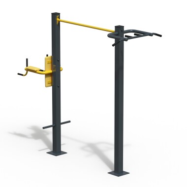 Тройной турник для улицы WK-08 устанавливается на дачных участках и в общественных местах. Обладает следующими особенностями: