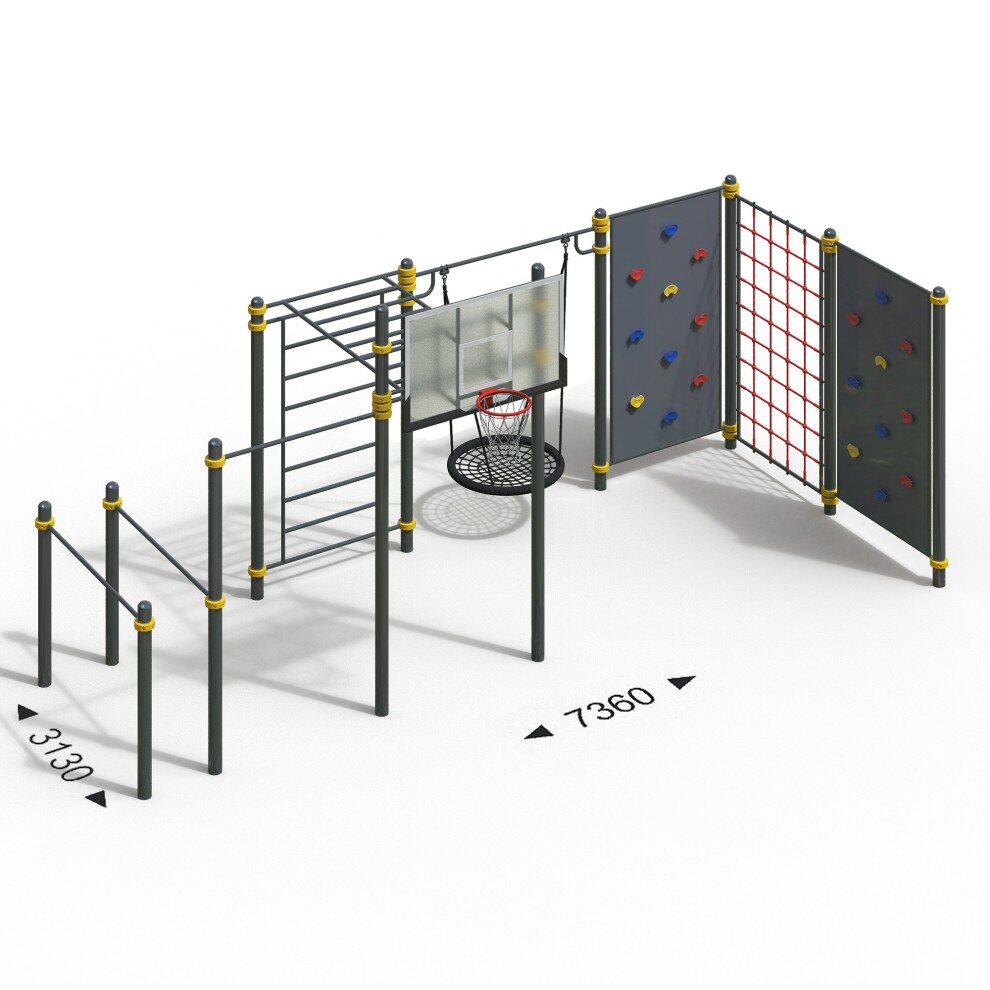 - Высоту стоек можно увеличить до любого размера. Также можно менять габариты некоторых элементов спорткомплексов.