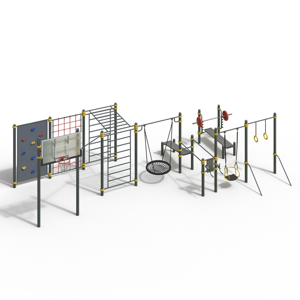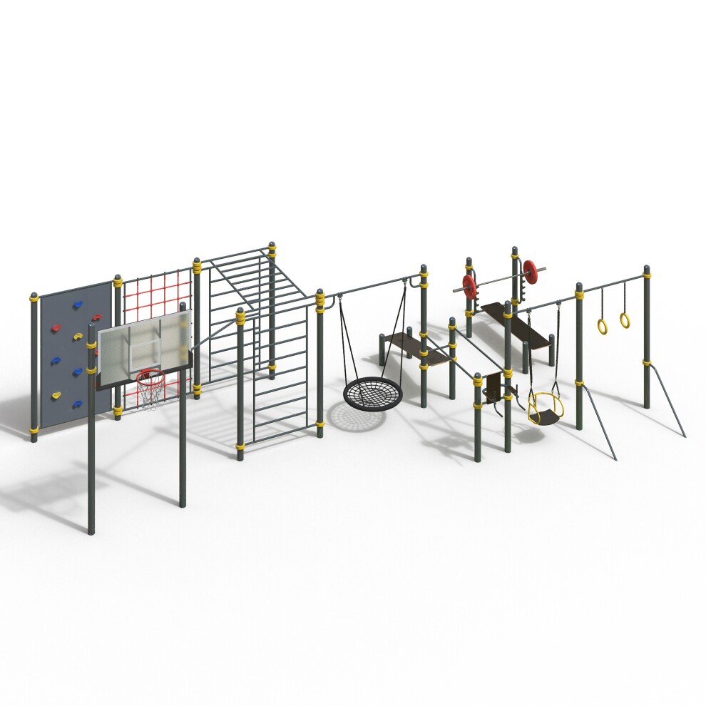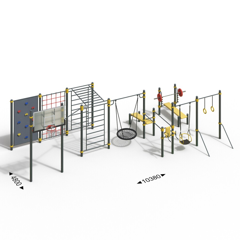 - Высоту стоек можно увеличить до любого размера. Также можно менять габариты некоторых элементов спорткомплексов.