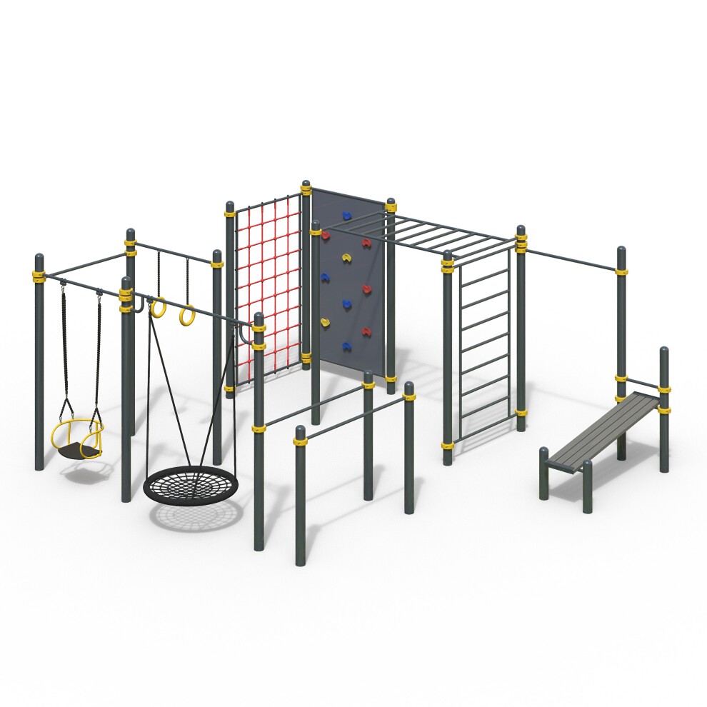 Уличный спортивный комплекс для workout WK-89 устанавливается на дачных участках и в общественных местах. Обладает следующими особенностями: