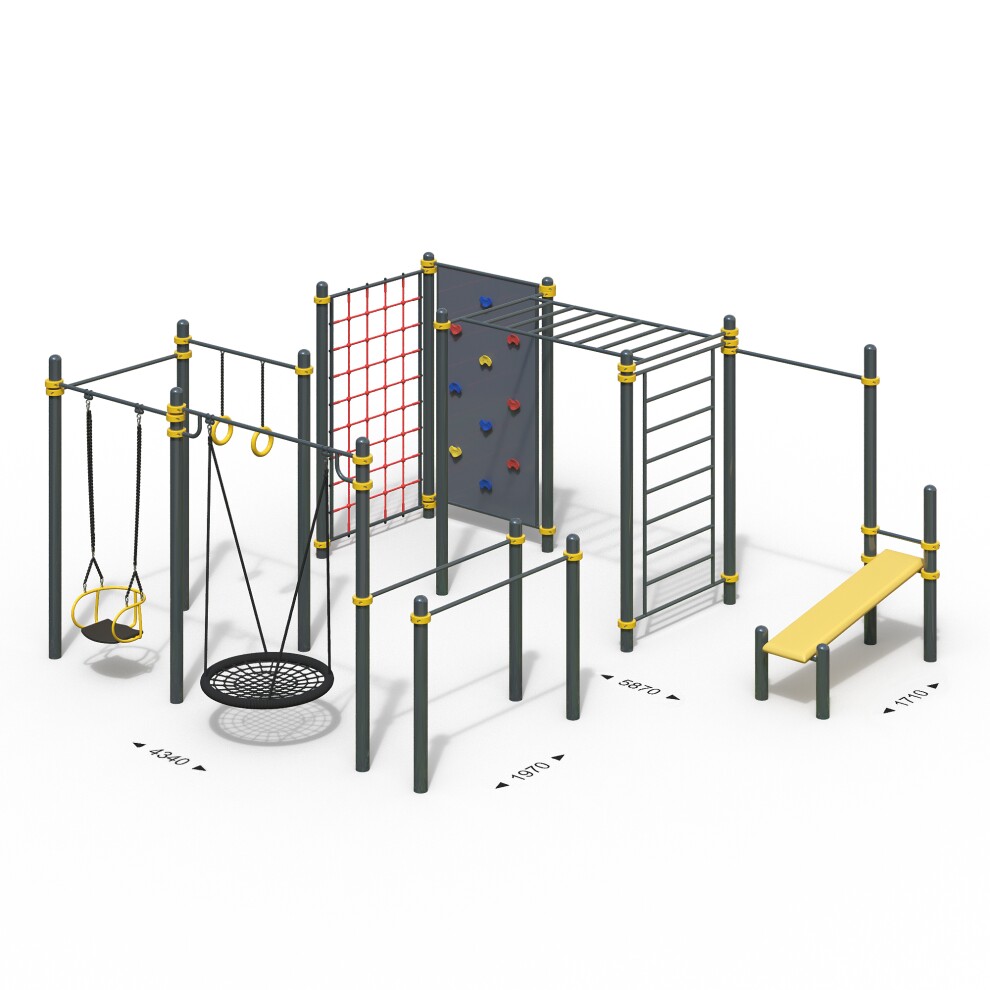 - Высоту стоек можно увеличить до любого размера. Также можно менять габариты некоторых элементов спорткомплексов.