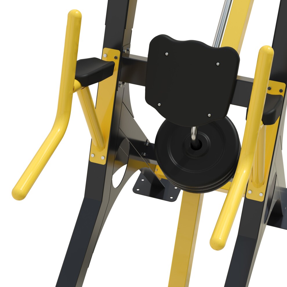 Уличный тренажер YTN1 предназначен для общественных пространств и частных территорий. Нагрузка регулируется за счет перемещения блинов по направляющей. Обладает следующими особенностями:
