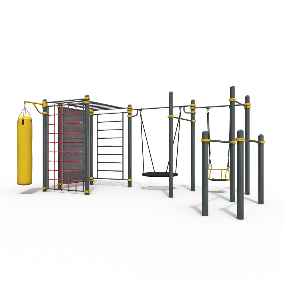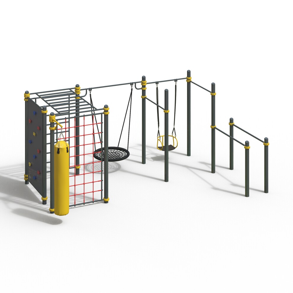Уличный спорткомплекс с канатной сетью и качелями WK-86