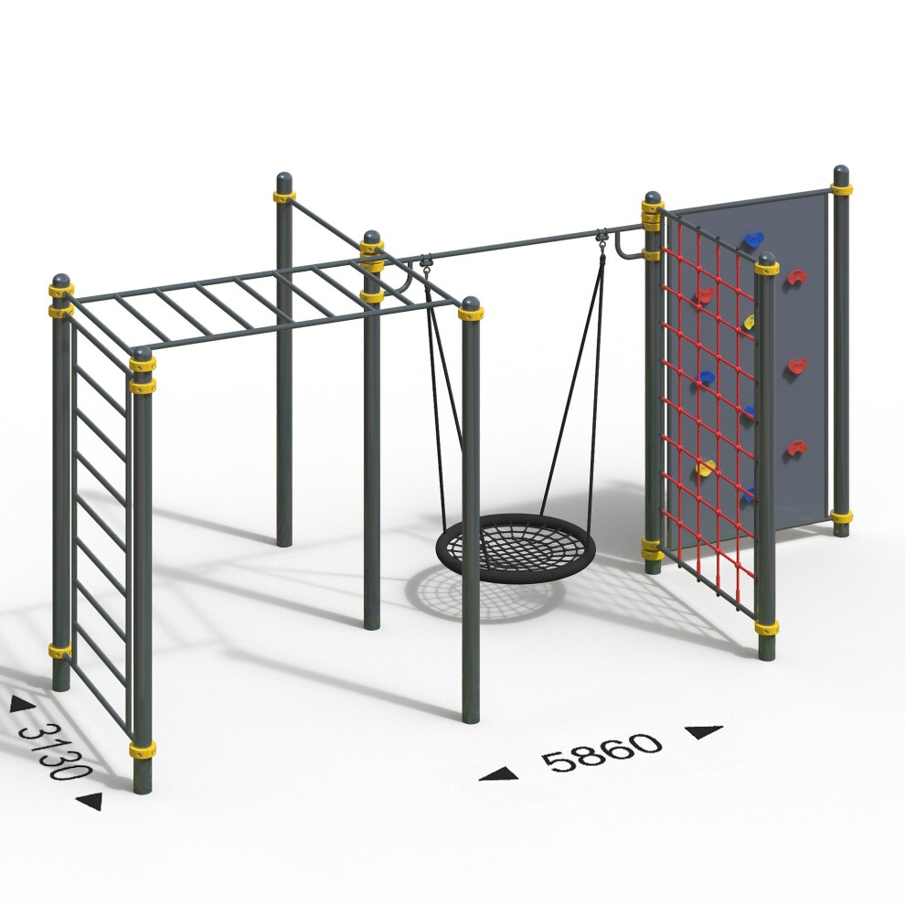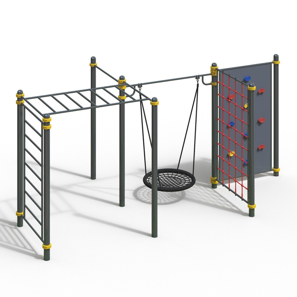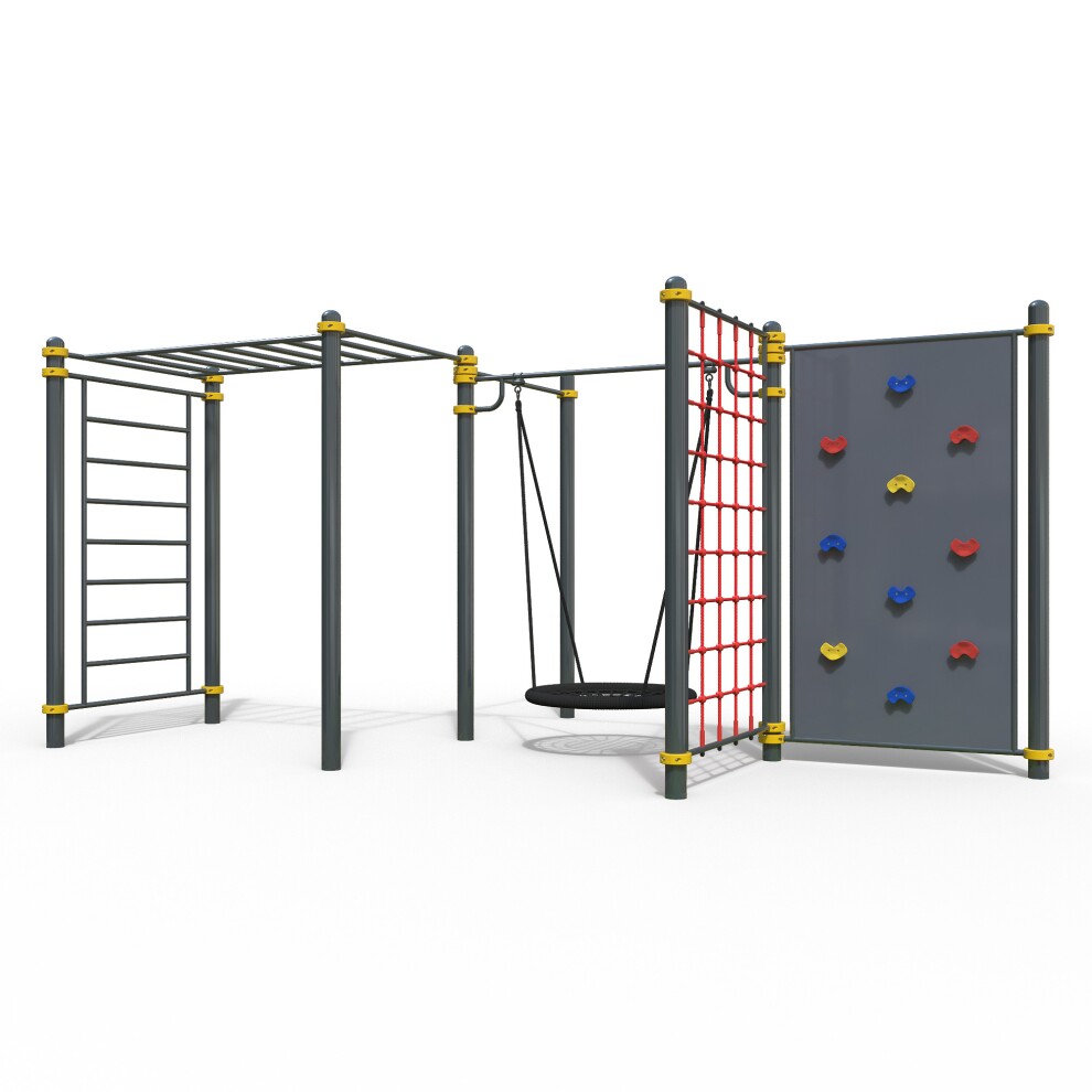 Уличный спорткомплекс с канатной сетью и скалодромом WK-77