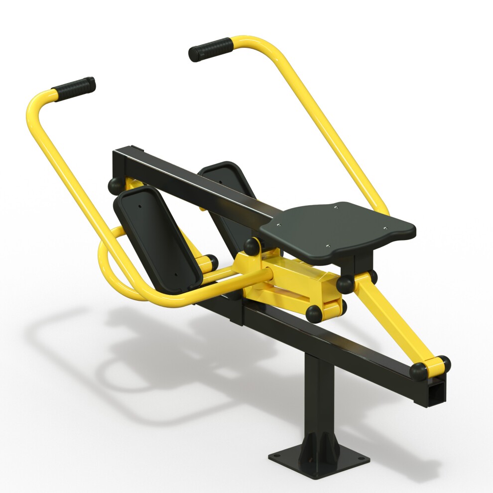 Посредством подвижной рычажной системы усилие от движения рукоятей передаётся горизонтально-вертикальному движению сиденья, которому противодействует вес тренирующегося.