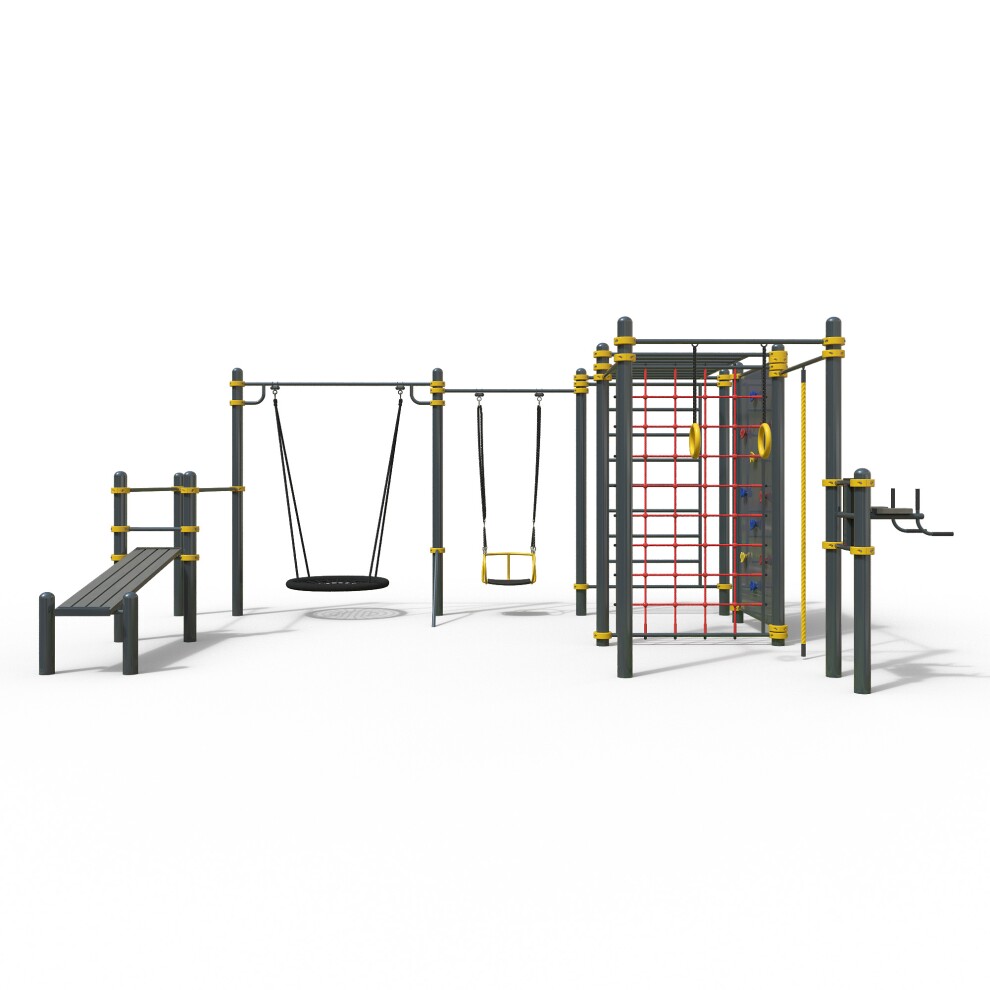 Уличный спортивный комплекс для workout WK-85 устанавливается на дачных участках и в общественных местах. Обладает следующими особенностями: